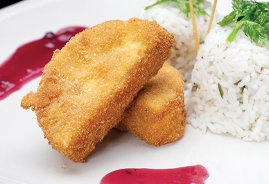 Ha a mártás elkészült forró olajban kisütjük az előzőleg bepanírozott camembert darabokat. A mártást a tányéron a sajt köré öntjük, vagy egy külön kis tálkában is kínálhatjuk mellé.