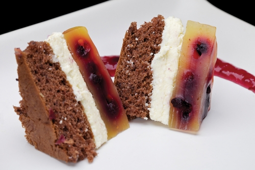 Ha a piskóta kihűlt, a krém felét rákenjük, megszórjuk az áfonyával, betakarjuk a krém másik felével.